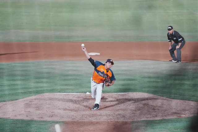 6局投完可能心情很好順便幫球童撿棒子(欸