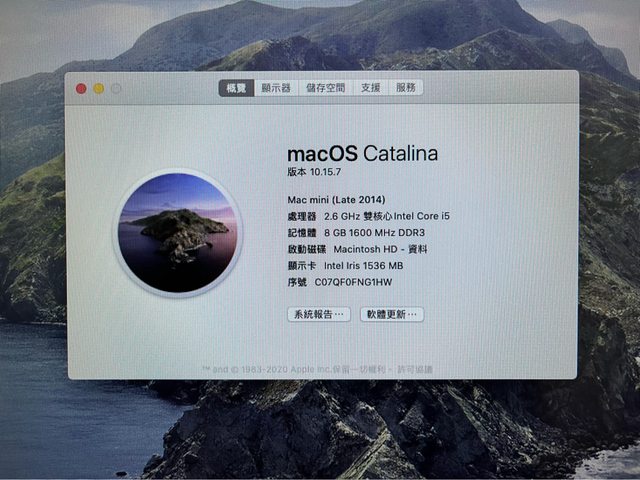 2.Mac mini(late 2014)原廠配備無改機 2.6Ghz i5(i5-4278U)/8g 1600 MHz LPDDR3