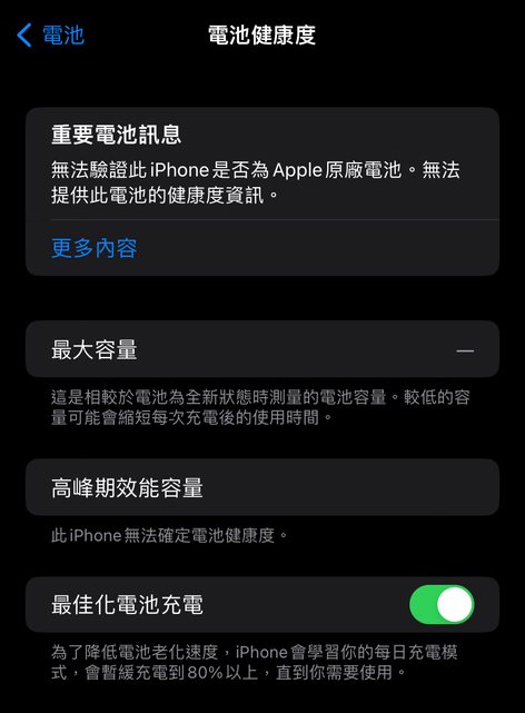 換副廠電池使用至今(副廠電池看不到健康度),其餘功能皆正常,外觀無破裂、撞傷