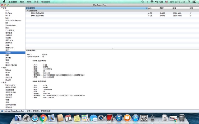[規格] Intel Core i5 2.5Ghz、8G DDR3 1600MHz 金士頓 x 2、120G SSD 金士頓 x 1