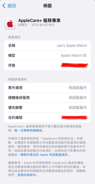 有加購 Apple Care+ 保固到2025/6/16