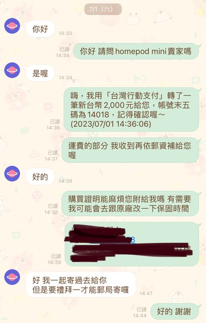 → CrystalSugar: 我同意退款啊 才2000塊而已 反正買家若沒拒收 還我 07/12 21:30