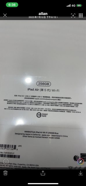 標題[販售] iPad Air 5 256G WiFi版 籃