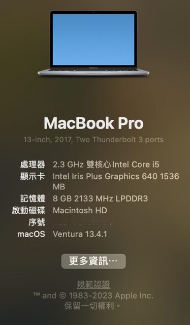 標題[販售] 台北 Macbook Pro 2017, i5/8G/256G