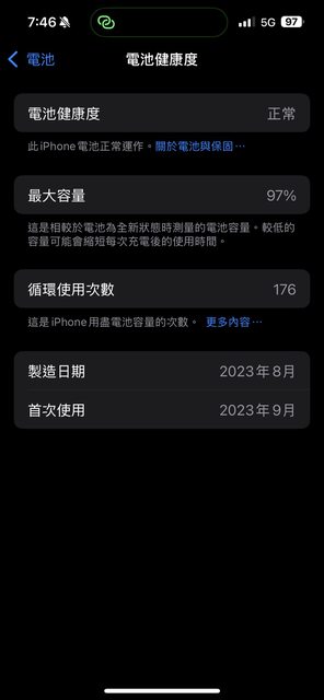 [商品照/補充說明] 電池97%,循環次數176而已,手機有貼AR抗反光電競霧面貼