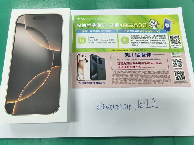 [型號] iPhone 16 Pro +神腦免費保護貼兌換券