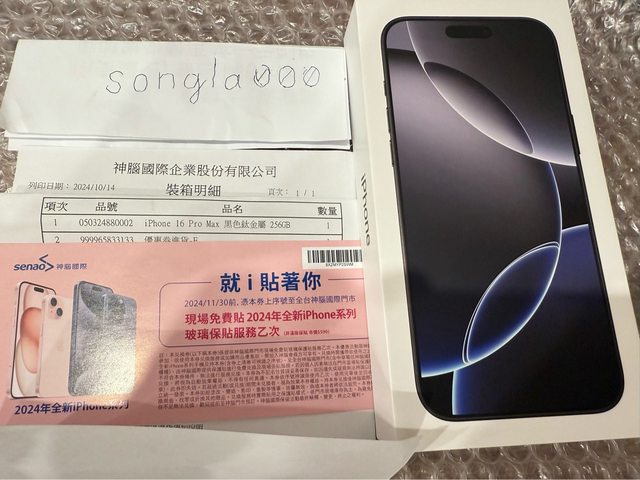 [型號] iPhone 16 Pro Max 256G 黑色 + 神腦貼膜券