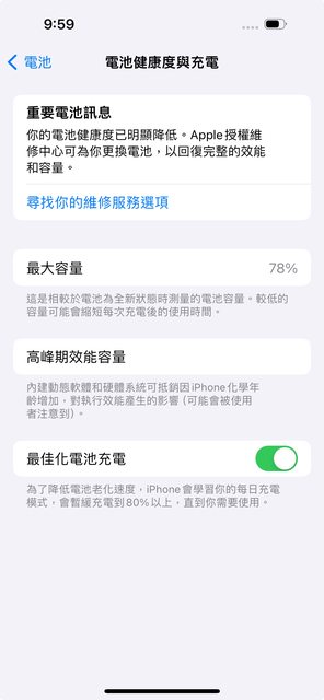 外觀無傷,功能皆正常,電池健康度78%