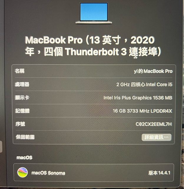 標題[販售] 台北MacBook pro2020 i5/16G/512G 13inch