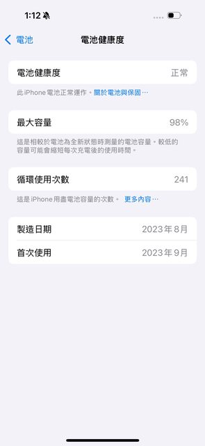 使用習慣良好,電池健康度98%極新,循環次數241次,有貼保護貼,附贈一個magsafe保