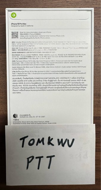 [型號] MYWV3ZP/A , IPHONE 16 Pro max