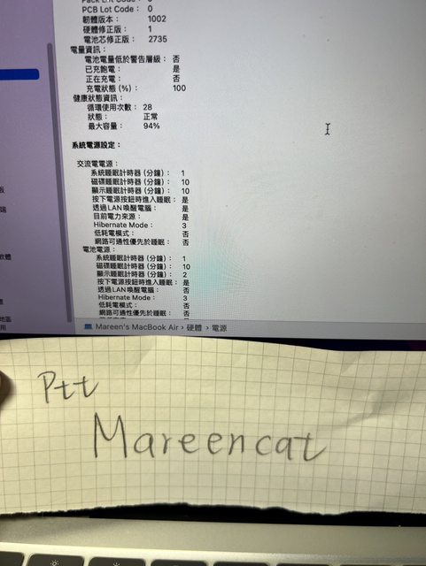 電池循環28次,最大電量94%