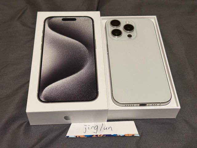 [型號] 1. iPhone 15 Pro 鈦白 256G (已售出) 2. iPhone 15 Pro Max 鈦藍 512G (9.5成新) 3. iPhone 15 Pro Max 鈦藍 512G (9.5成新) [規格] 1. 256G(已售出) 2. 512G 3. 512G [保固] 1. 已過保,電池健康度93%(已售出) 2. 已過保,電池健康度99% 3. 已過保,電池健康度90% [盒裝配件] 原盒+充電線 [售價] 1. $25,000(已售出) 2. $35,000 3. $31,000 [交易方式/地點] 面交/雙北捷運線、內湖 [連絡方式] 站內信交換Line [商品照/補充說明] iPhone 15 Pro 256G 鈦白