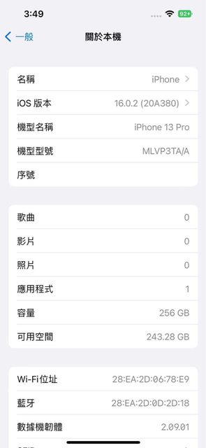 iOS 16.0.2,盒機序號一致,全機功能正常,電池健康度85%,正反面、四邊皆漂亮無傷