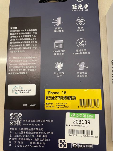 [盒裝配件] 原廠 +贈藍光盾(售價$1400)