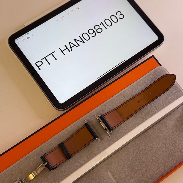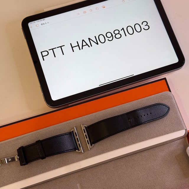 主機、充電線、橘色錶帶、Hermes Single Tour 45滟m Deployment Buckle NOIR色 蝴蝶