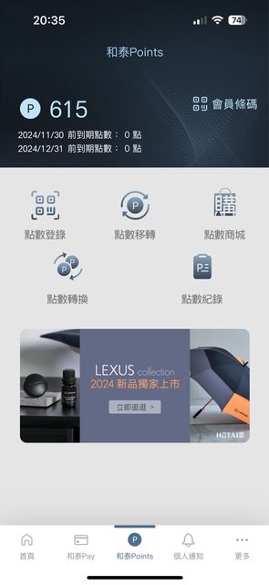 物品名稱:售和泰POINTS 點數615點