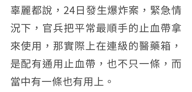 → afv : “各部隊醫務所及連級醫藥箱現均配有通用止血帶” 07/27 20:49