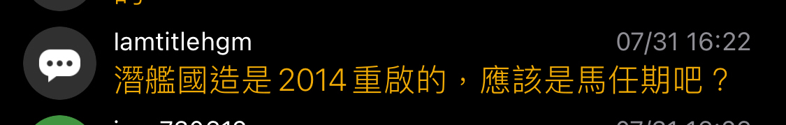 → Iamtitlehgm : 潛艦國造是2014重啟的,應該是馬任期吧? 07/31 16:22
