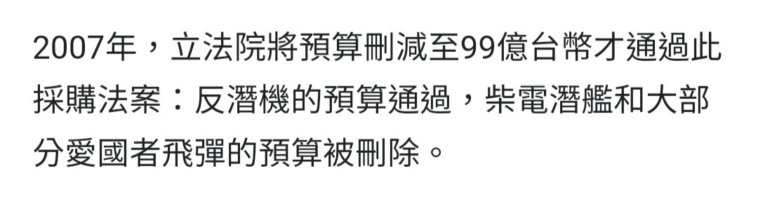 → Iamtitlehgm : 會認為陳水扁第二任期間的軍購預算,國民黨不擋就 07/31 13:50