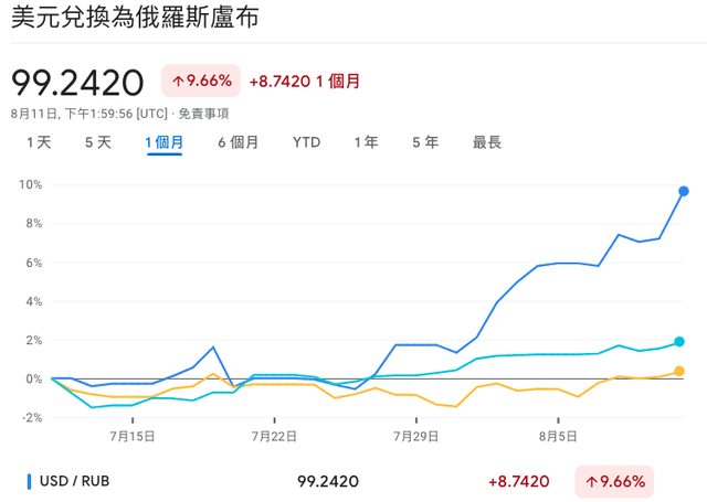推 frozenmoon : The ruble has plunged to its lowest level 08/11 22:00