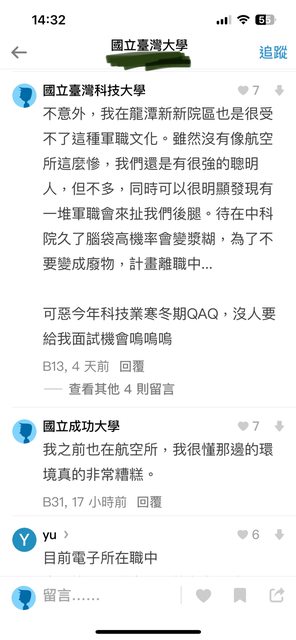 → chyx741021 : 是如此,軍工產業也是競爭不過矽谷那些高薪工作 08/17 16:13