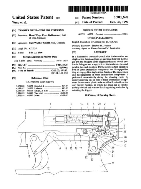 https://i.imgur.com/nyhHGUP.png US5701698A專利-P99擊發機構