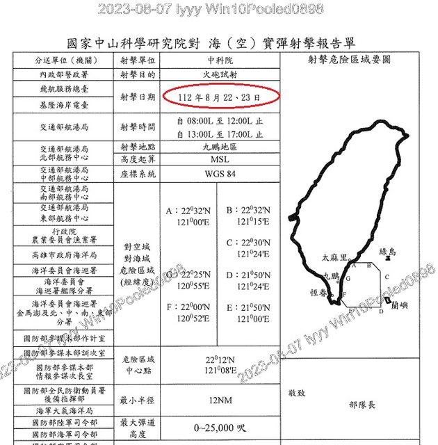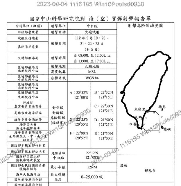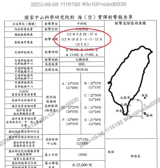 → asmp : 媒體報導的那次雄三試射是在8/9由空軍申請的管制區 09/15 21:33