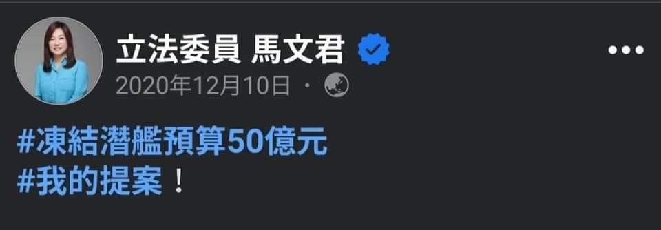 推 chyx741021 : 馬文君可是會把提案凍結潛艦預算當政績的立委 09/29 10:50