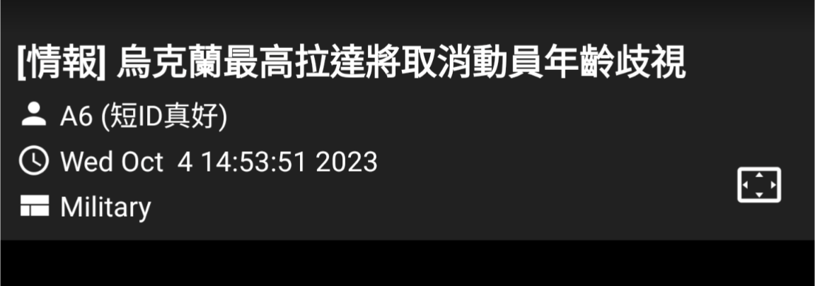 推 A6 : 大哥 你說的是 烏克蘭指的"動員"年齡 10/04 19:35