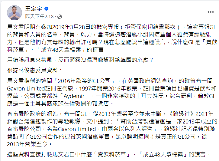 推 jess730612 : 事涉軍事外交機密無從查證GL公司極可能英國政府安排 10/08 15:23