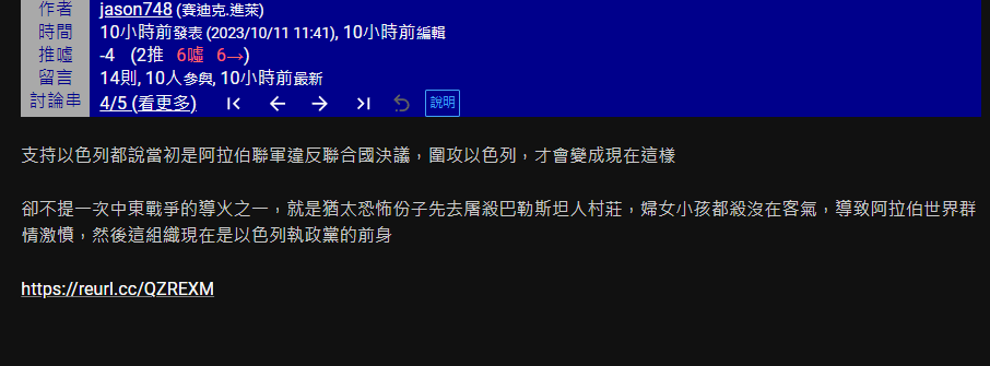 噓 st89702 : 造謠第一次中東戰爭導火索 怎麼不說戰後埃及佔領加10/11 23:25