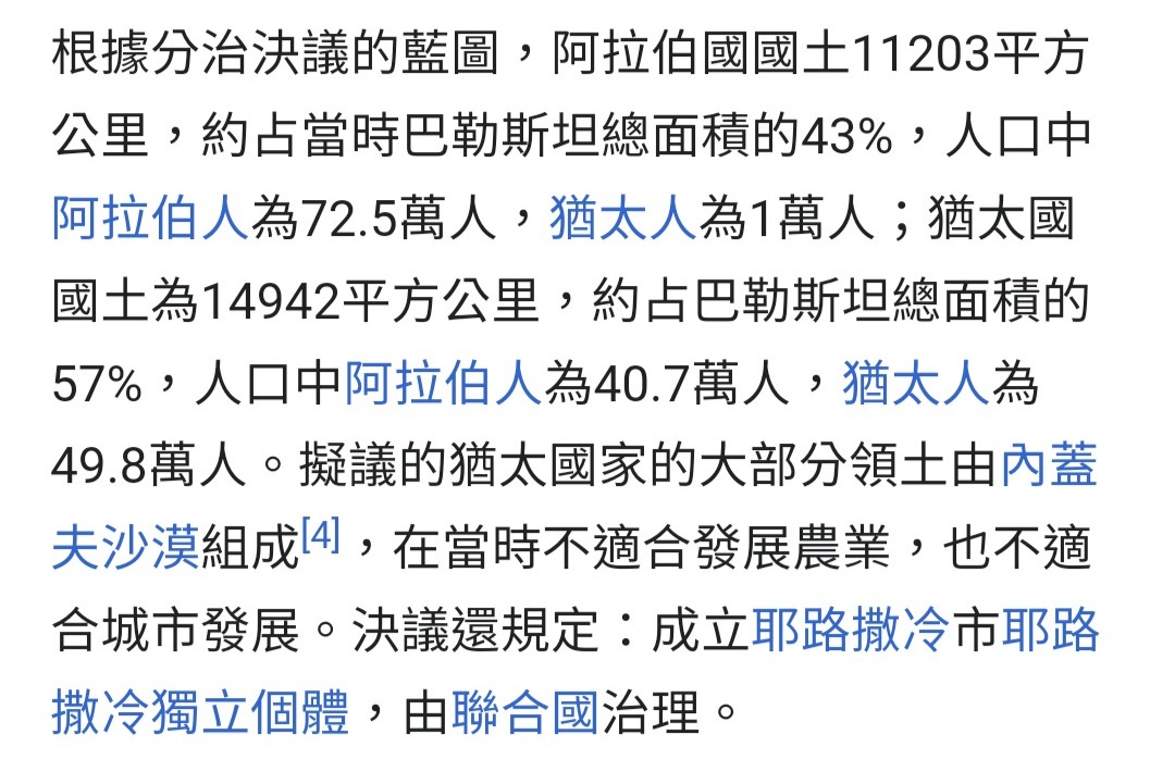 噓 sanae0307 : 聯合國當年方案是鄂圖曼時代的城市區歸阿拉伯人, 10/13 22:10
