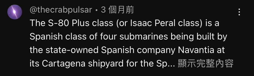 → BigLargeBoss: 下面留言說是西班牙的潛艇10/17 22:31