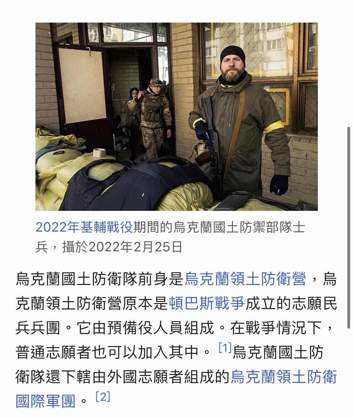 → h80733 : 那樣,是沒有戰鬥經驗的組織。 可是烏克蘭的TDF就 11/21 14:52