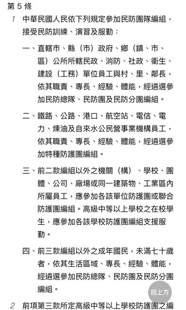 推 ntnusleep : 不過民防法第五條是"經遴選參加"而非應參加 11/22 21:51