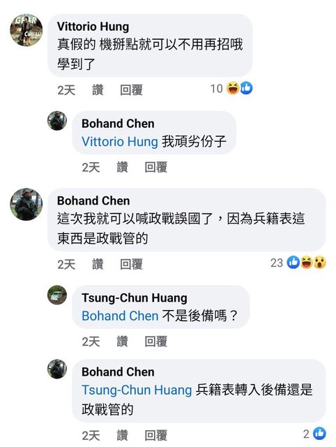 推 k1a1t1a1n1a : 這位他是有管道找人幫他喬名單,換軍區繼續教召 11/23 09:50