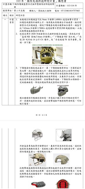 軍備局姑且是有在規劃下一代頭盔的,防彈標準是NIJ III級。這個計畫是這篇新聞之前就?