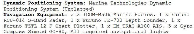 官方提供的資訊中唯一值得注意的電子設備是海洋技術動態定位系統