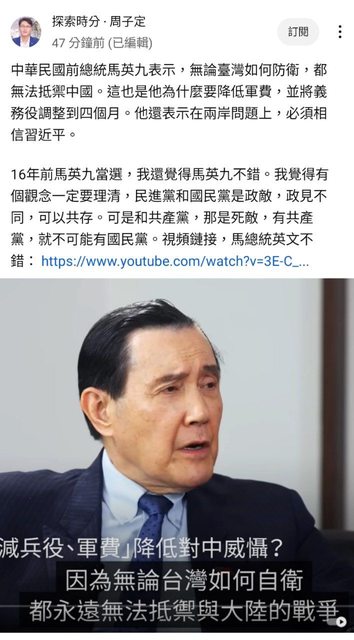 : 馬英九:打不贏,怎麼建軍怎麼防都沒用,台灣不選擇放軟而是選擇武裝自己會死人
