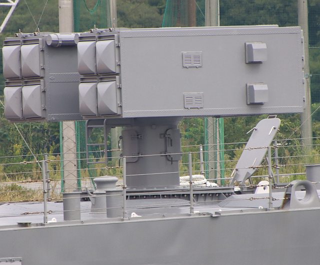 : 為兩座二聯裝的斜射發射箱,