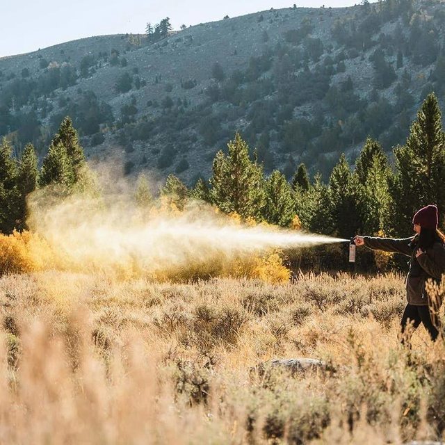 防熊噴霧的標準用法是在熊接近有效射程前就開始噴灑,