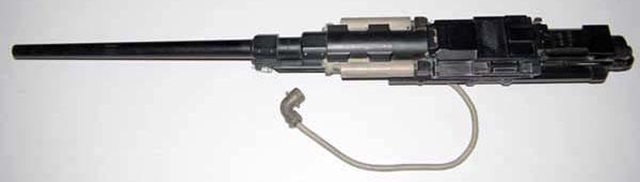 小的將火藥氣體導引至槍機後方、作為氣體緩衝器,成功達到降低後座力的目標。