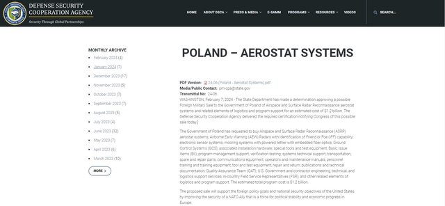 DSCA並未說明波蘭現在可能總共購買多少浮空器