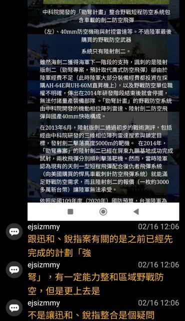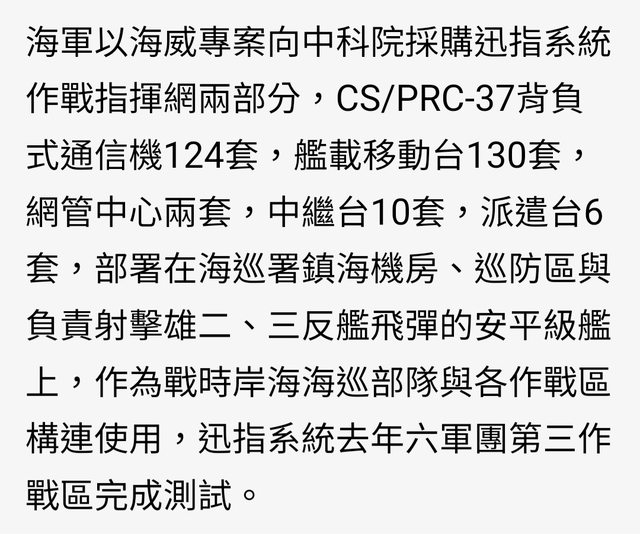 → ejsizmmy : 無視聯成系統、迅和案皆屬於C4ISR範圍內系統02/16 13:53