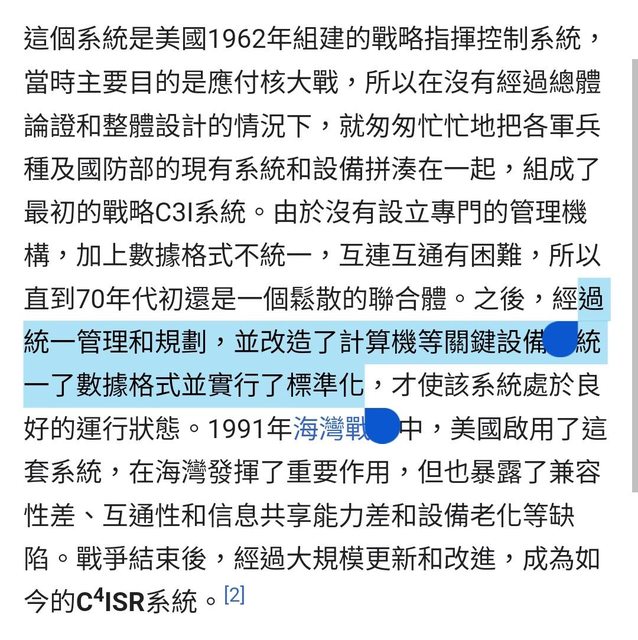 → ejsizmmy : 老一點的文章就有提到三軍本身就有C4ISR系統,不是 02/16 13:56