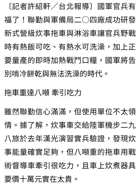 → ja23072008 : 純粹是國軍不重視後勤補給跟野戰炊爨而已。所以缺 02/18 00:27