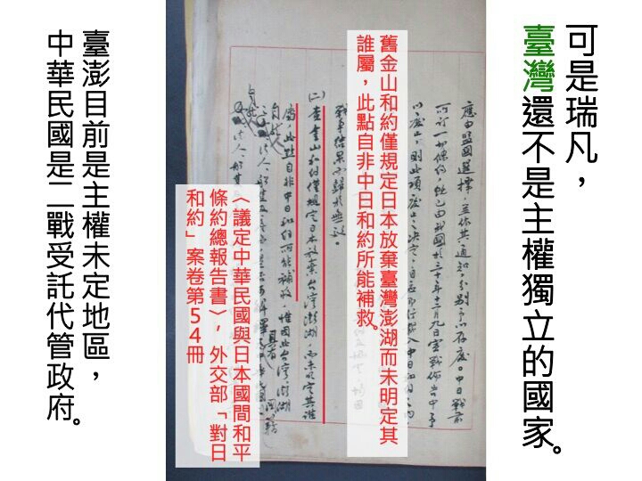 → wattswatts : 有關 國民黨控制的 舊金山合約 臺灣澎湖歸屬(主權 02/19 12:54