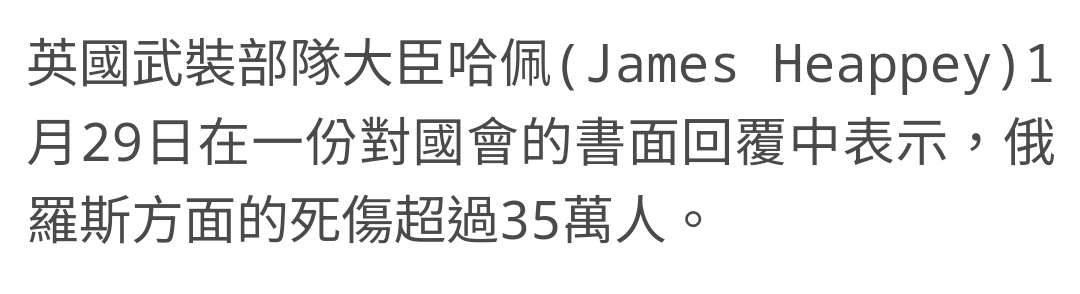 推 zaku2015 : 俄羅斯戰損30幾萬士兵應該是沒有爭議的,畢竟英美 02/25 21:24