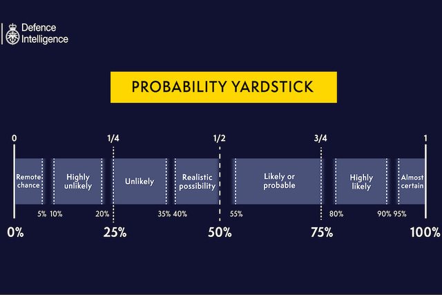 英國國防部對自己的用詞對應的是多少機率,還特地畫了一套量尺說明 XD